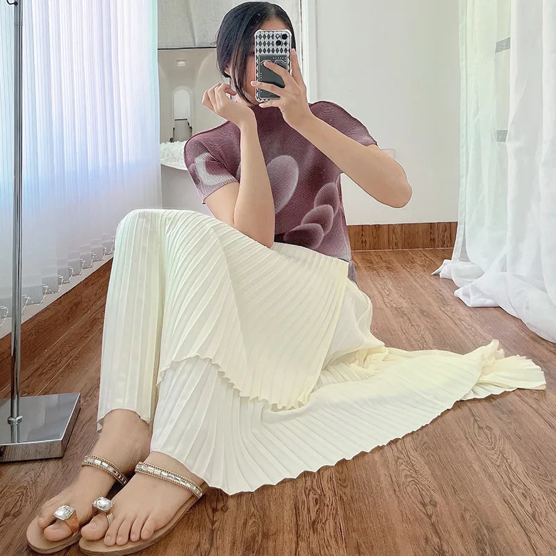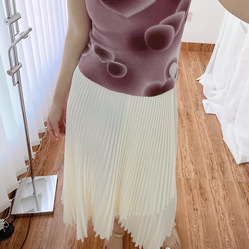 衣都精品- 2023新款百褶鬆緊腰顯瘦不規則褶皺半身裙