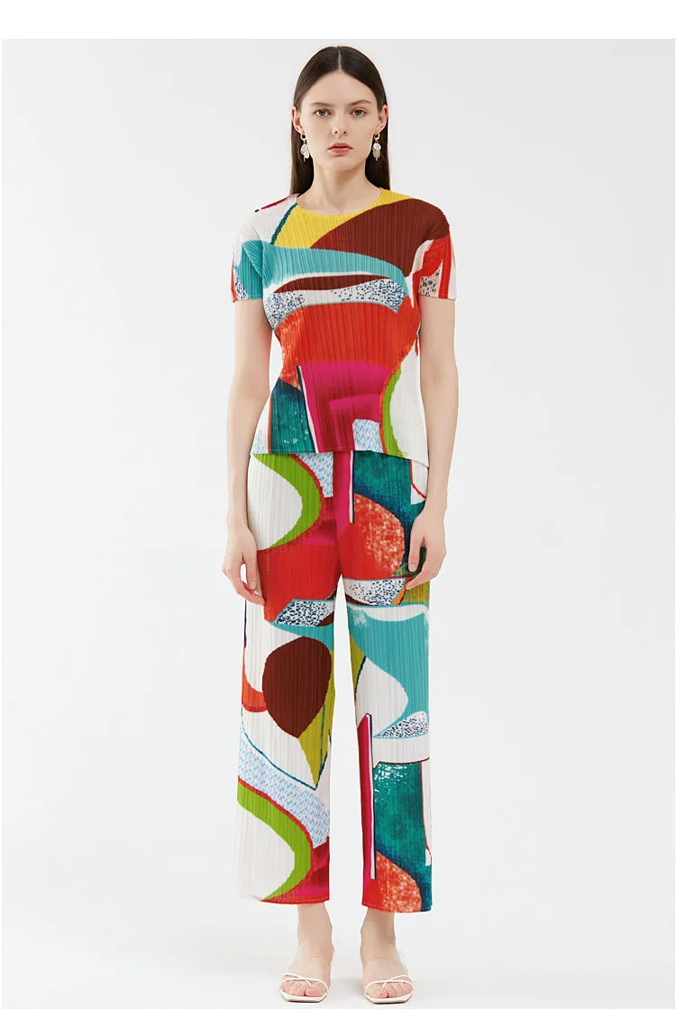 衣都精品- 2023新款時尚百搭長袖褶皺上衣+九分褲套裝