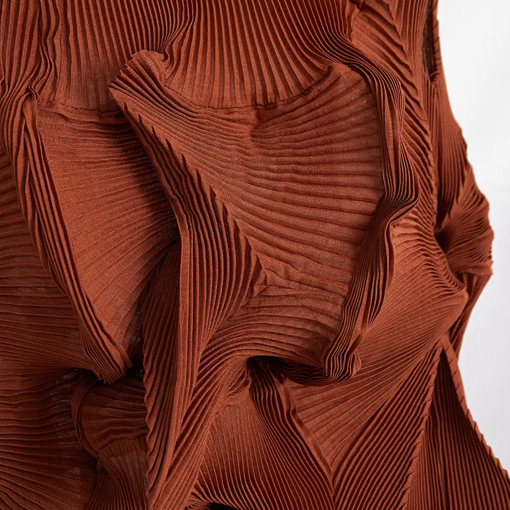 衣都精品- 2023新款復古百褶線條印花修身褶皺上衣