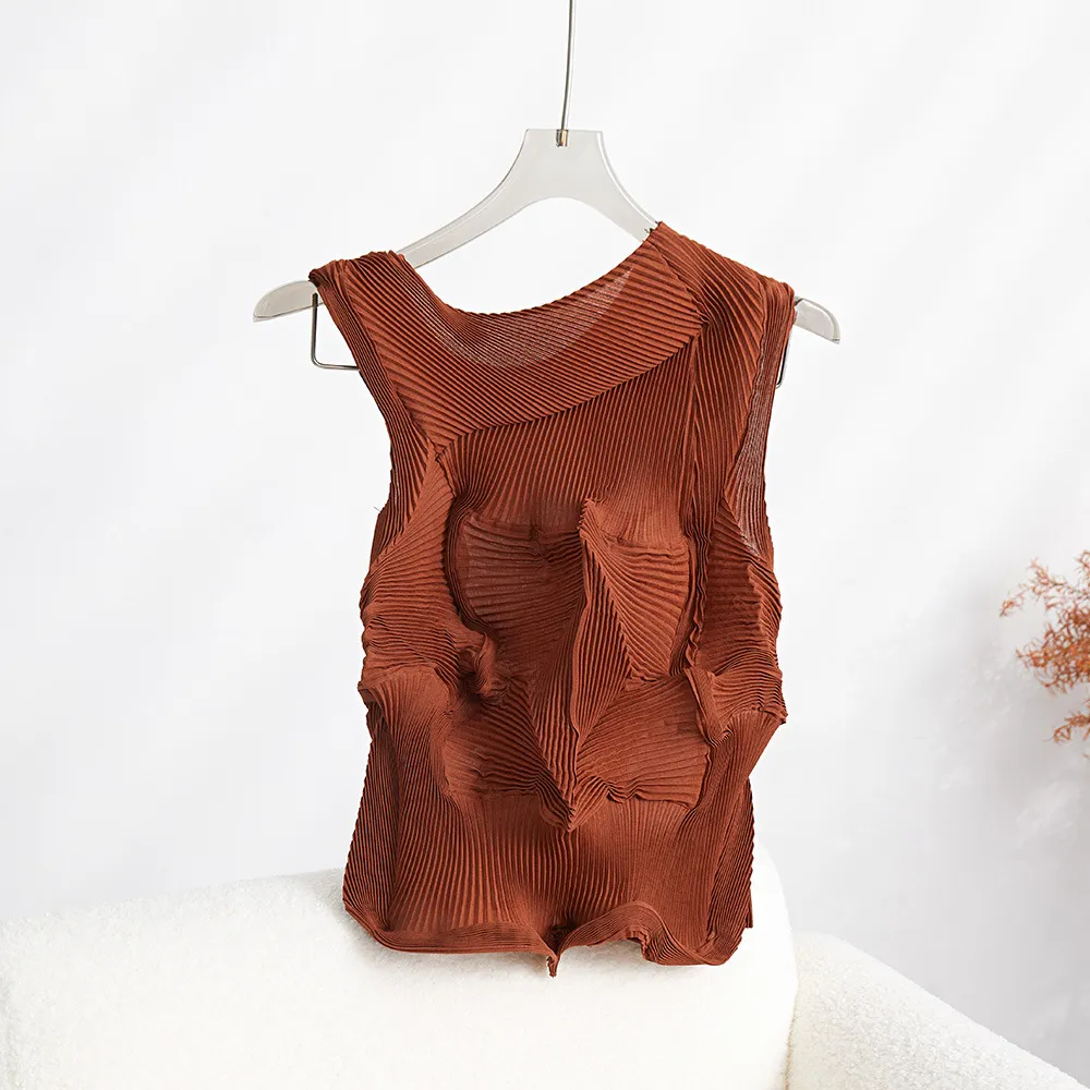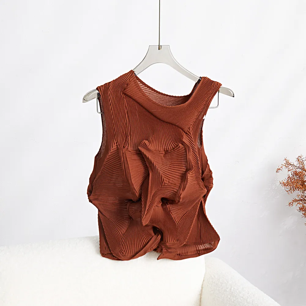 衣都精品- 2023新款不規則小眾設計無袖褶皺上衣