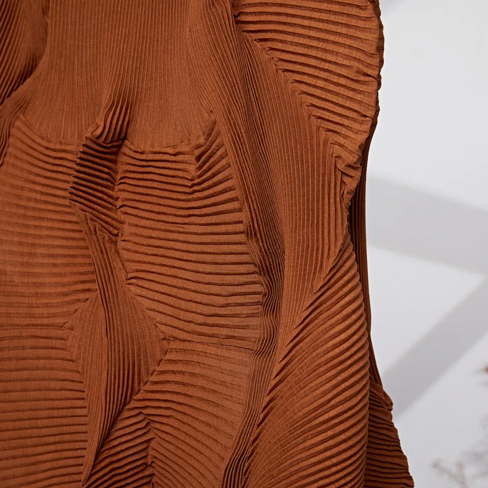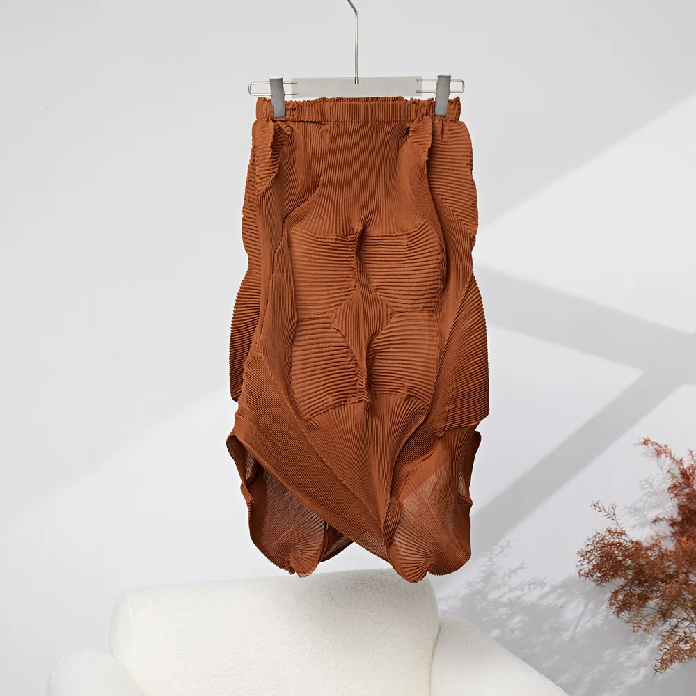 衣都精品- 2023新款不規則百褶設計中長花苞褶皺半身裙