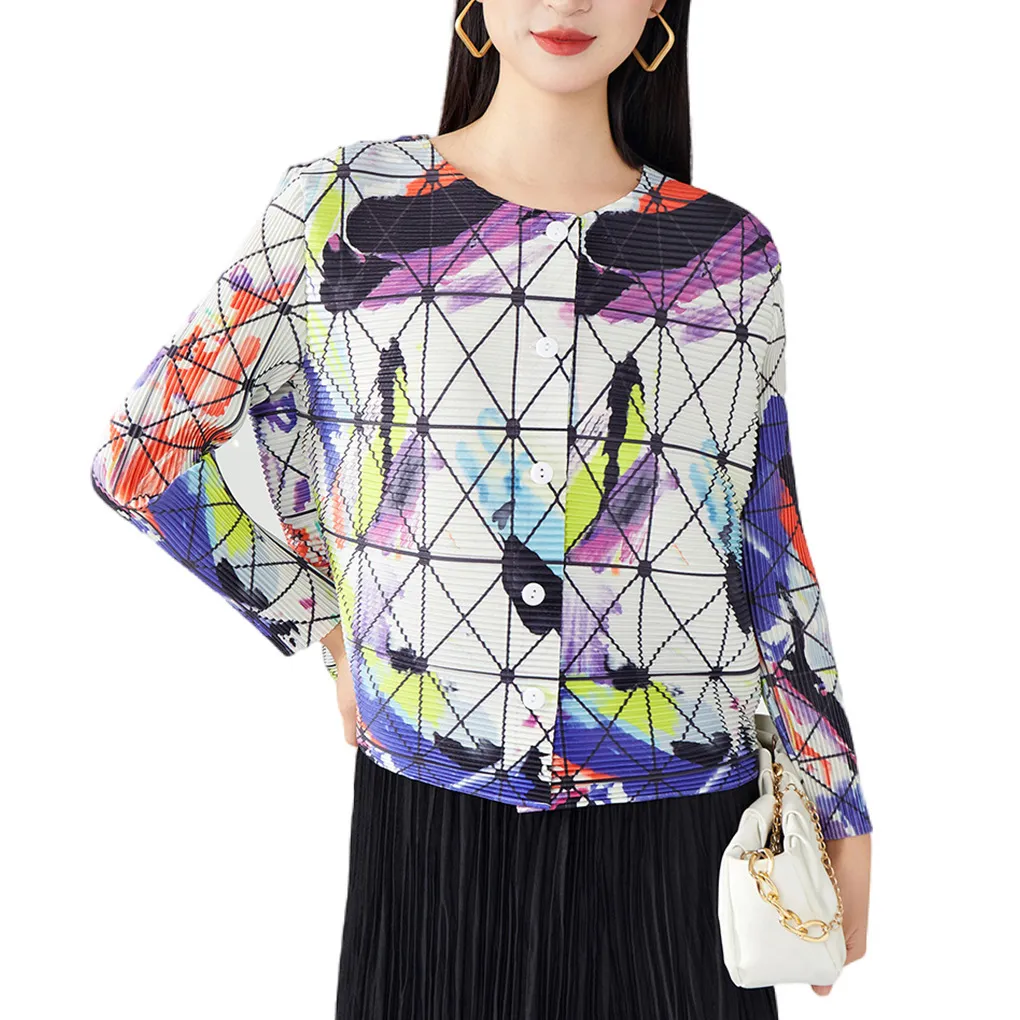 衣都精品- 2023新款長袖休閒百搭單排扣開襟褶皺上衣