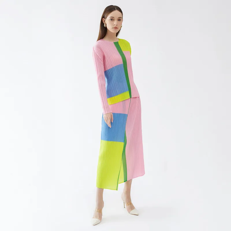 衣都精品- 2024新款高端設計印花蝙蝠袖上衣+長褲褶皺套裝