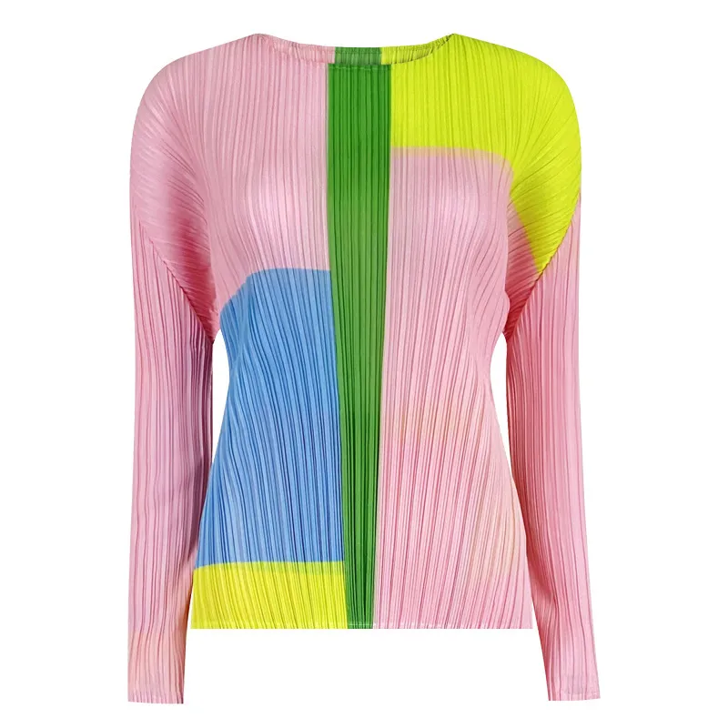 衣都精品- 2024新款高端設計氣質圓領長袖褶皺上衣