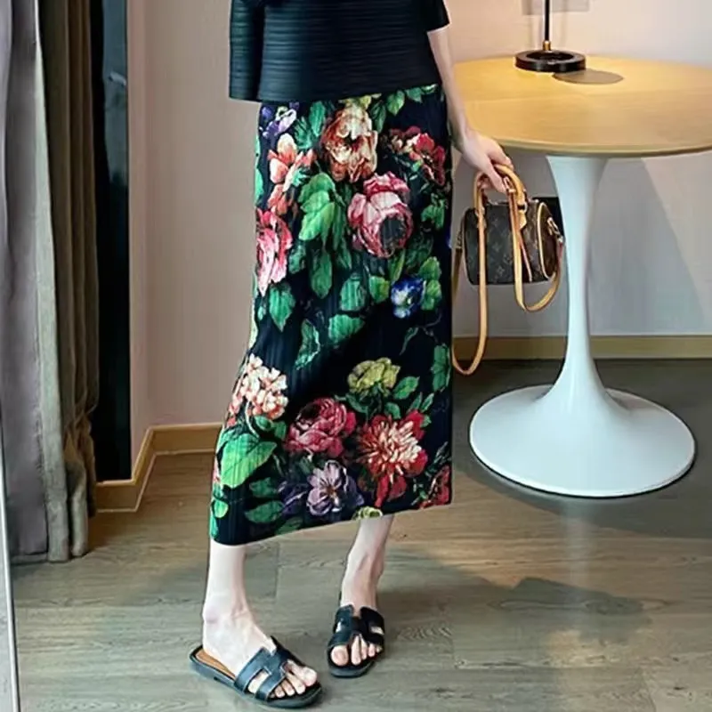 衣都精品- 2024新款薄款高腰顯瘦直筒開叉褶皺半身裙