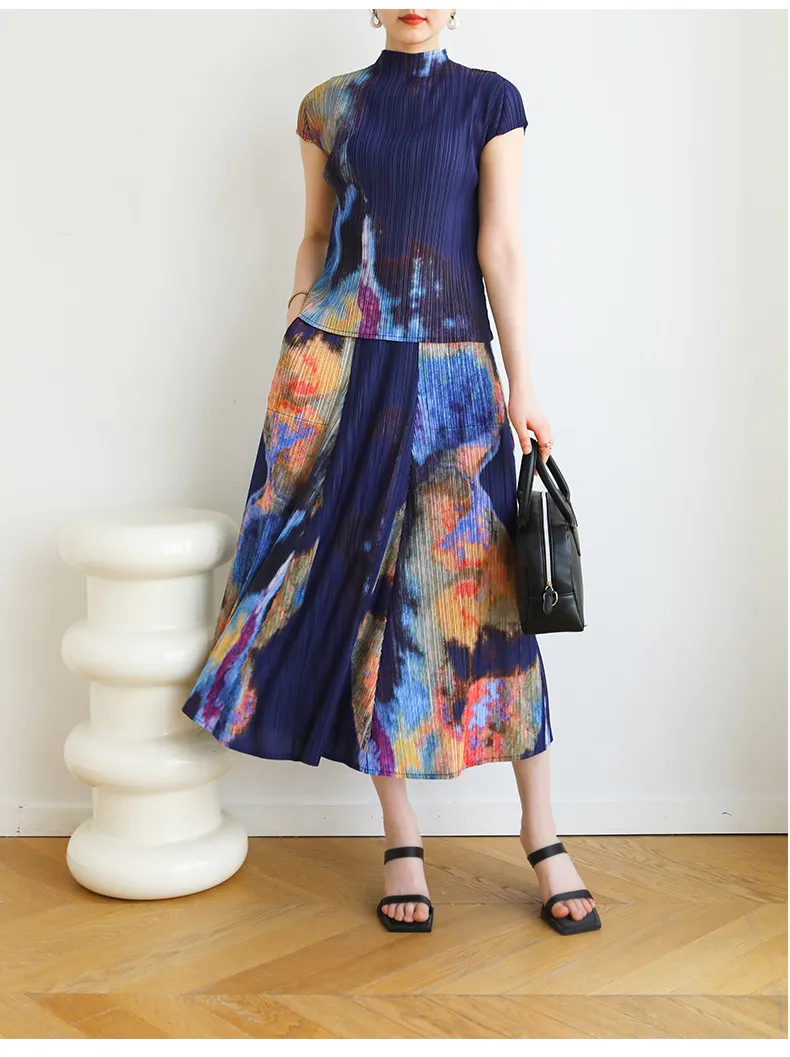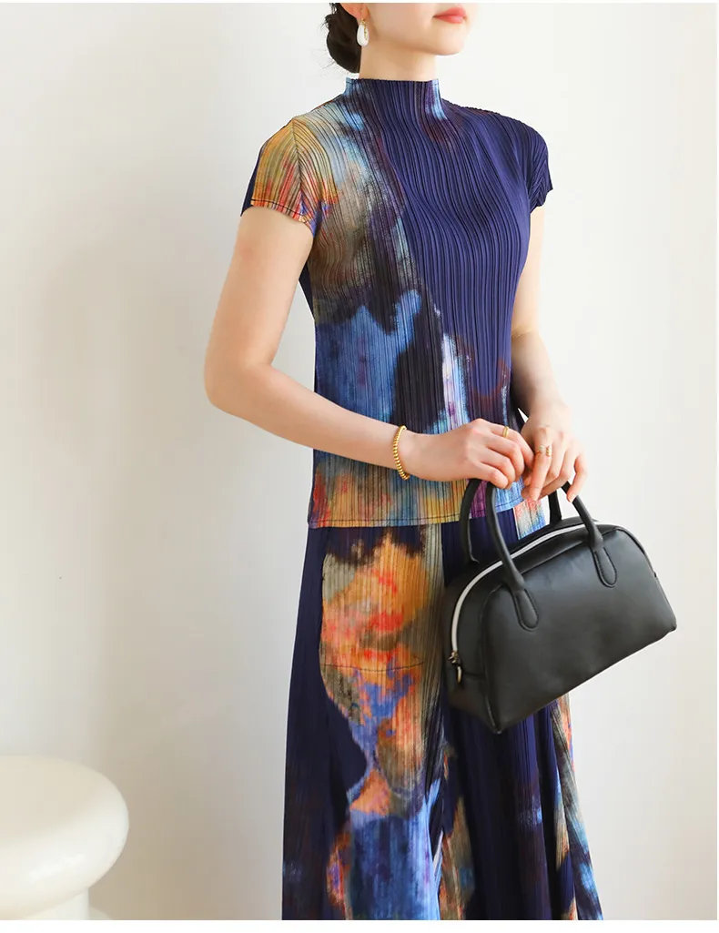 衣都精品- 2024新款個性印染時尚半高領高端褶皺上衣