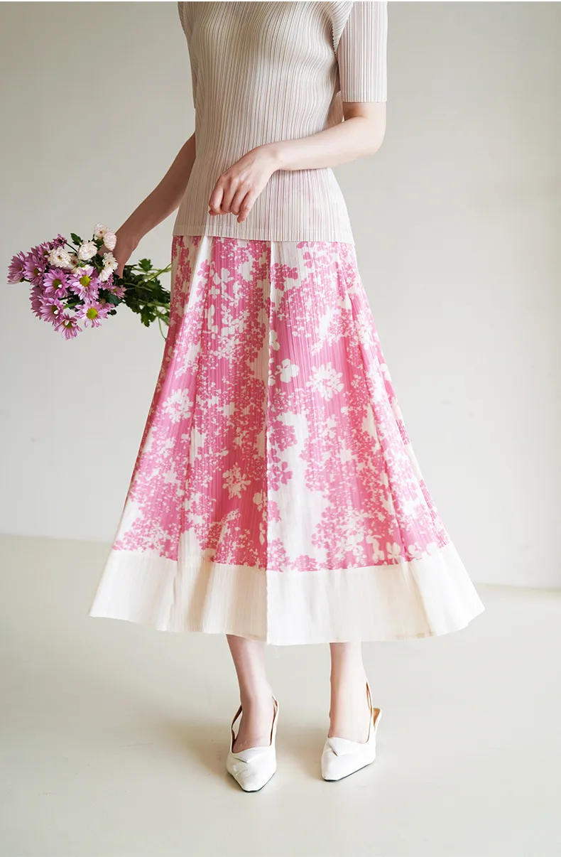 衣都精品- 2024新款田園小香風休閒時尚印花褶皺半身裙