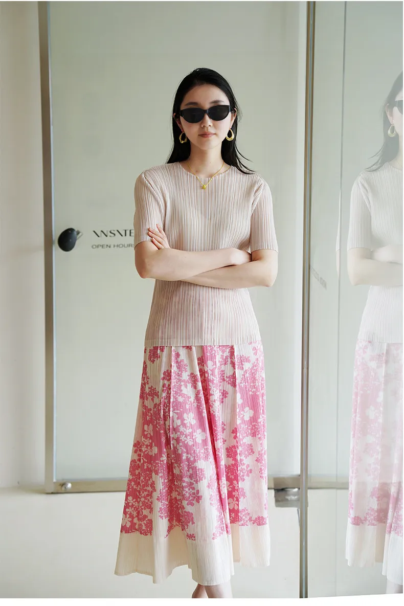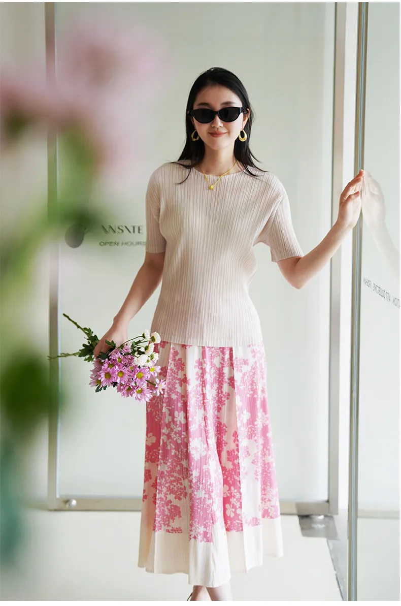 衣都精品- 2024新款專櫃品質個性印染時尚褶皺半身裙