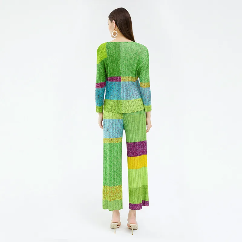 衣都精品- 2023新款時尚撞色印花休閒褶皺直筒褲