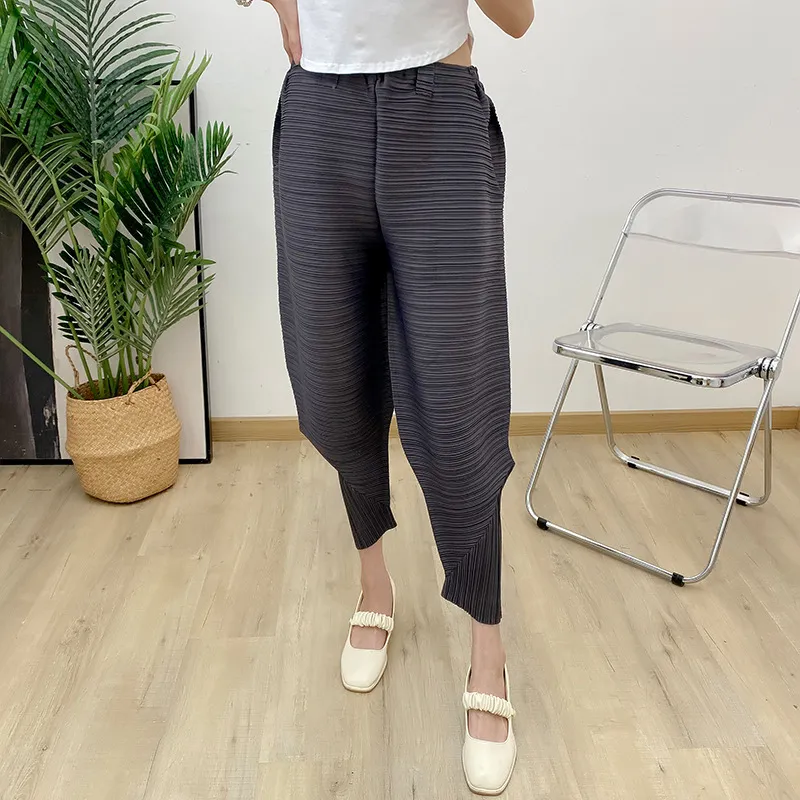 衣都精品- 2024新款寬鬆薄款鬆緊腰小腳九分褶皺哈倫褲