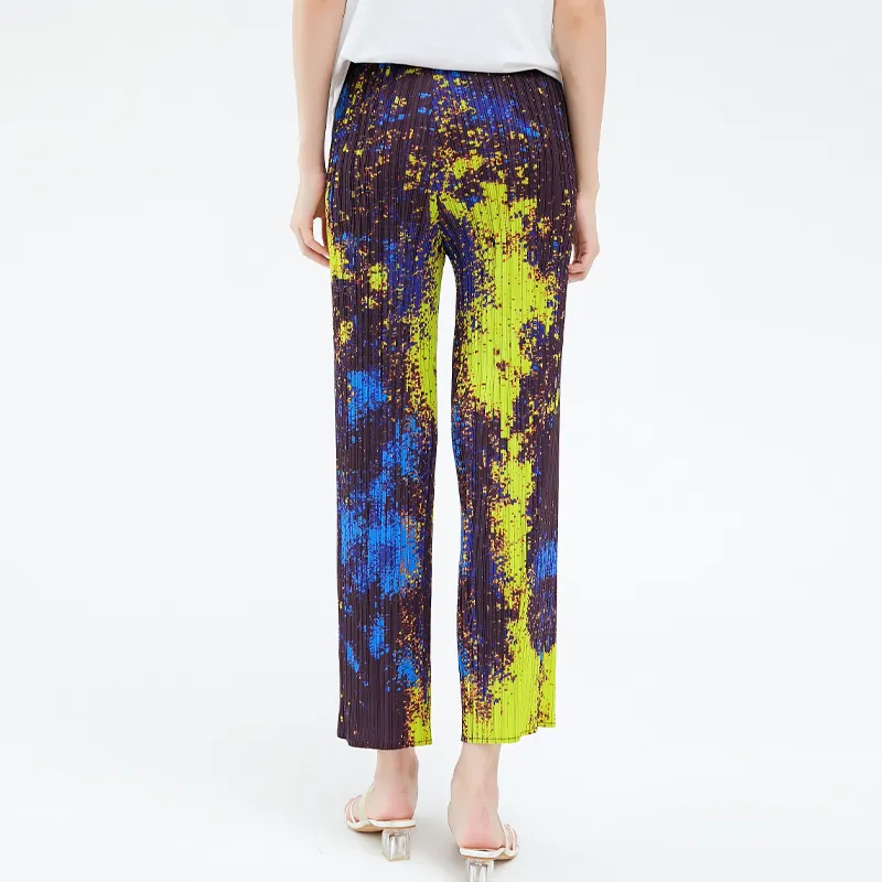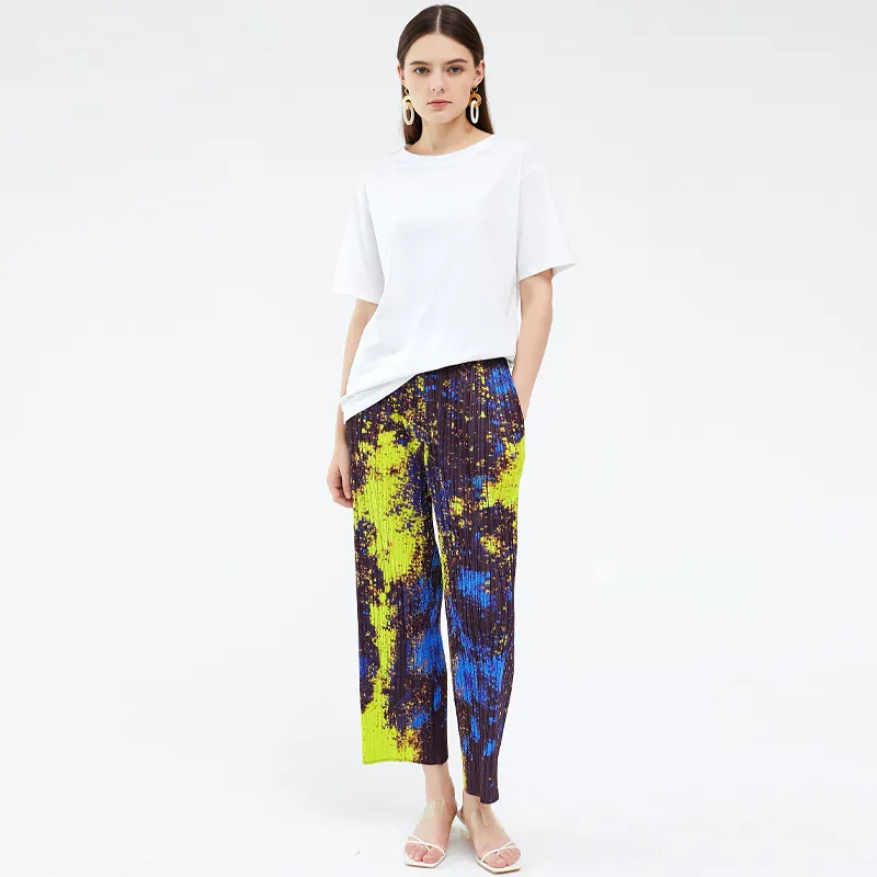 衣都精品- 2023新款時尚撞色印花休閒褶皺直筒褲