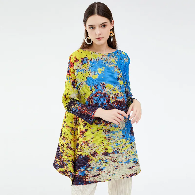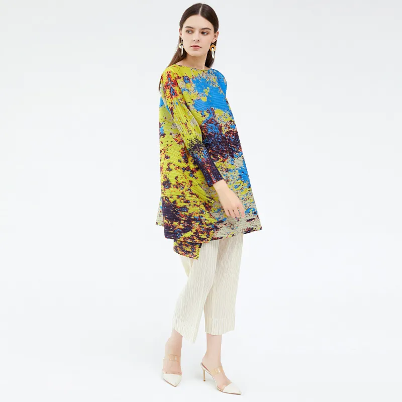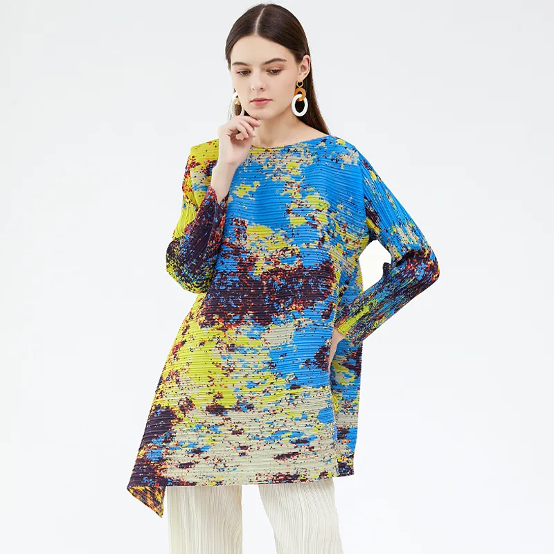 衣都精品- 2023新款不規則撞色長袖星空印花褶皺上衣