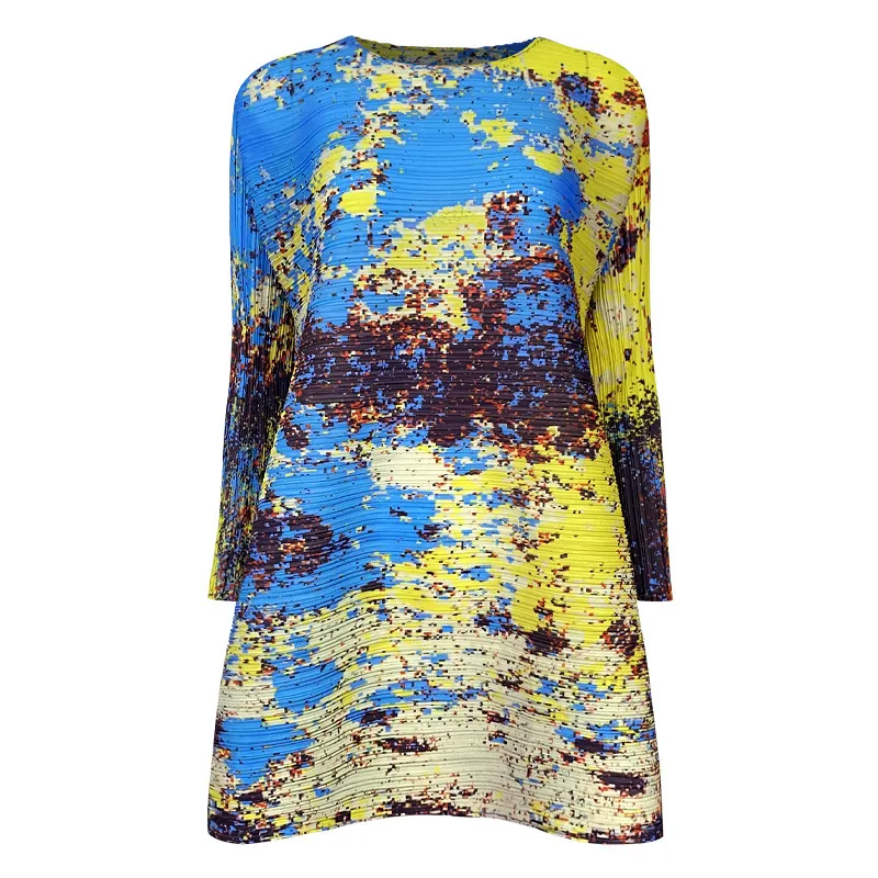 衣都精品- 2023新款無袖氣質顯瘦星空印花褶皺連衣裙