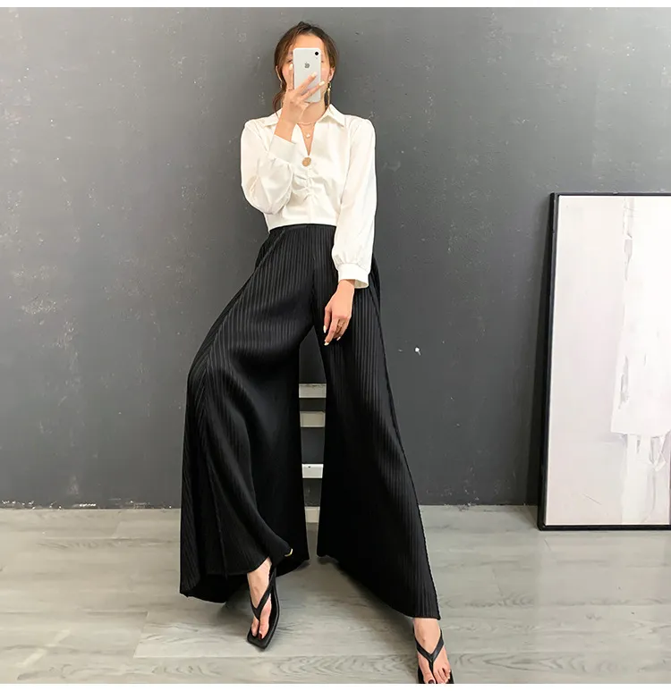 衣都精品- 2023新款時尚氣質百合褶皺闊腿褲