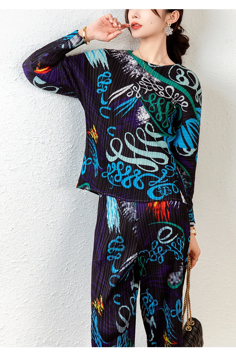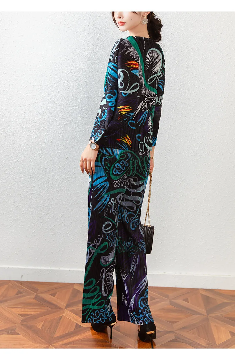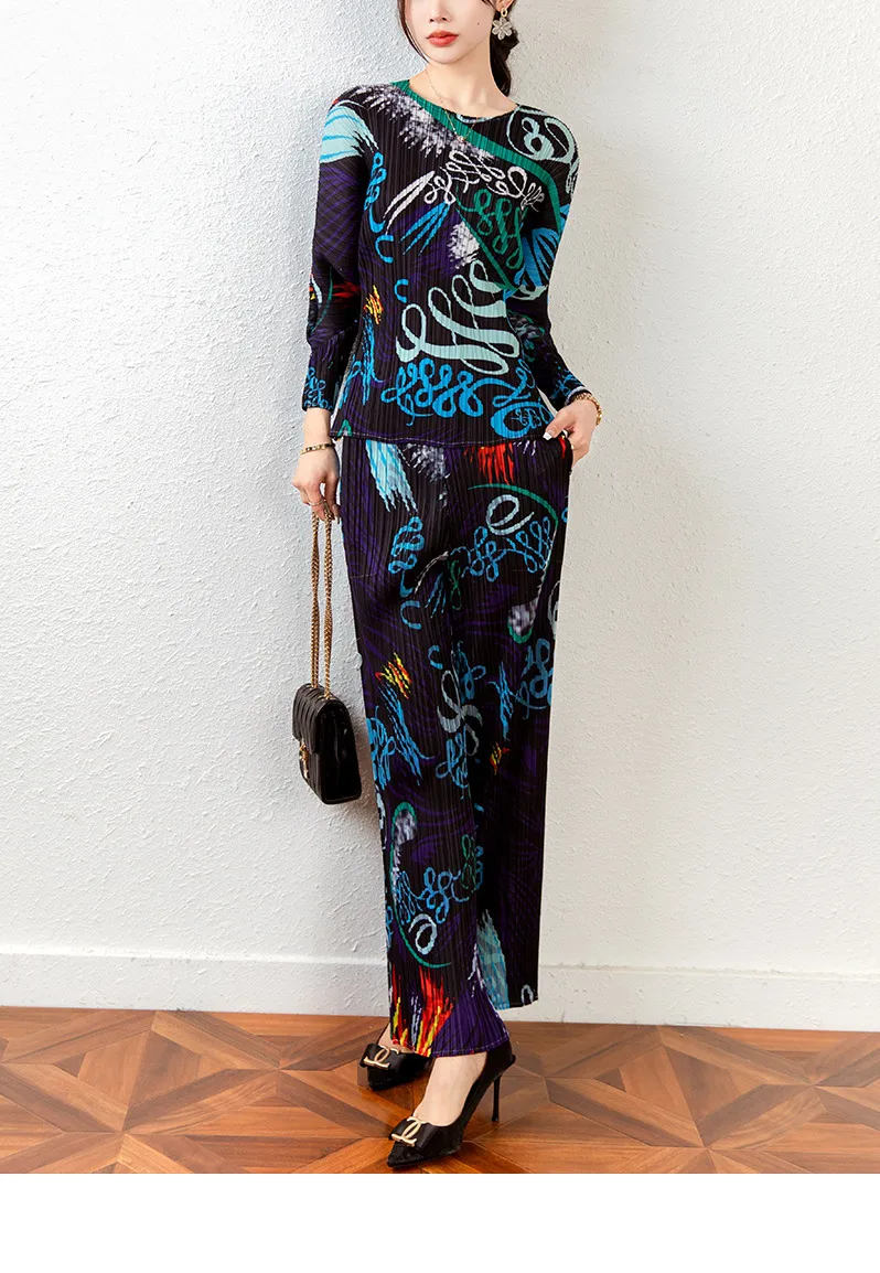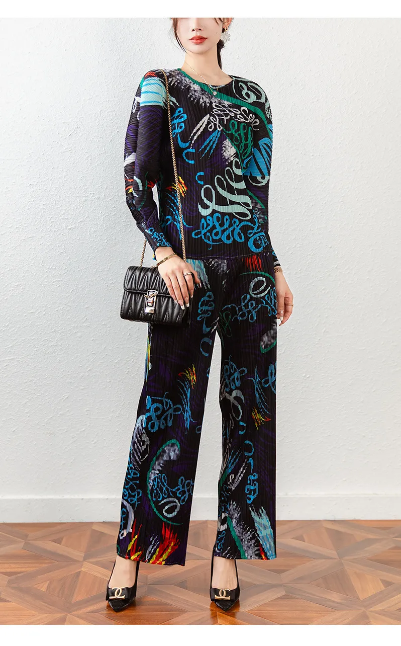 衣都精品- 2023新款時尚休閒星空印花褶皺直筒褲