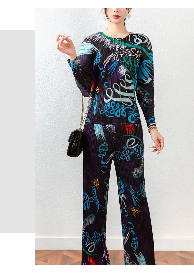 衣都精品- 2023新款時尚休閒星空印花褶皺直筒褲