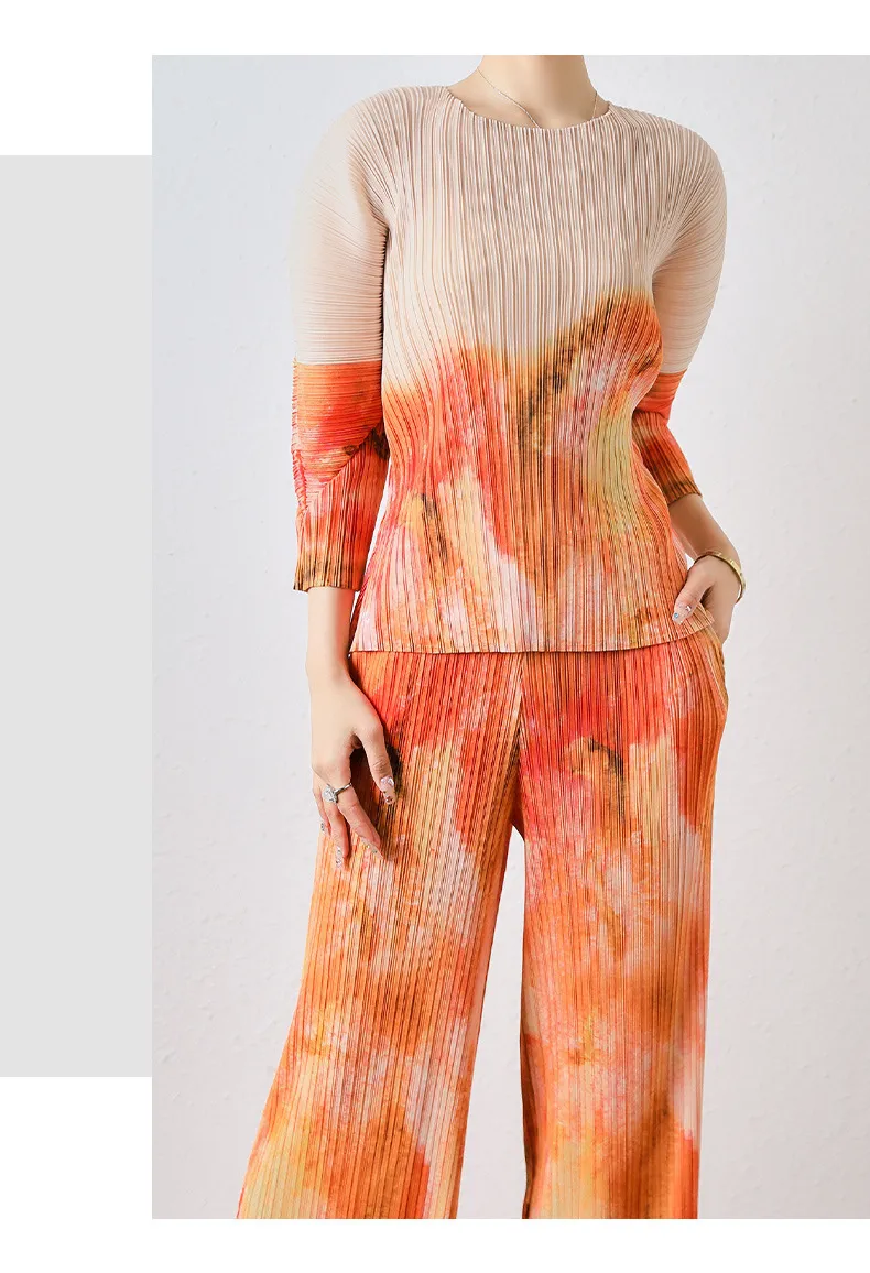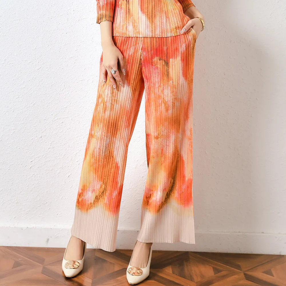 衣都精品- 2023新款時尚休閒星空印花褶皺直筒褲