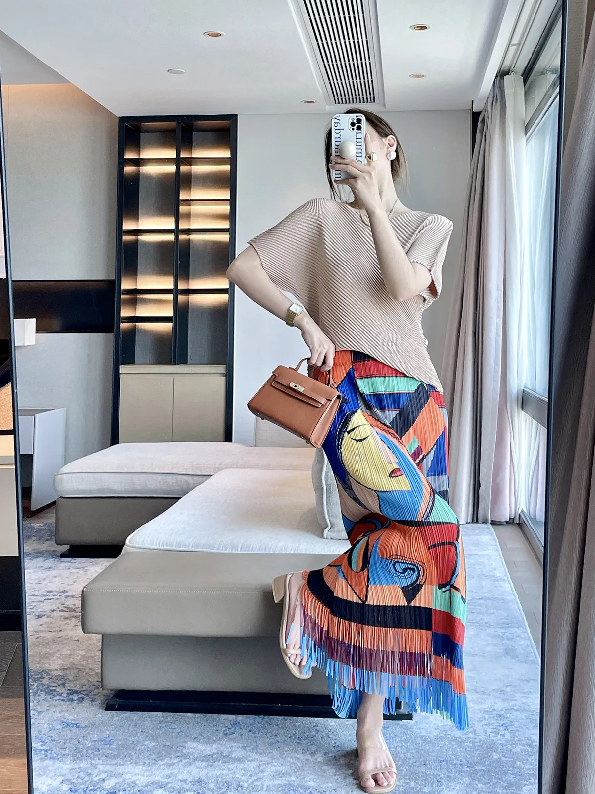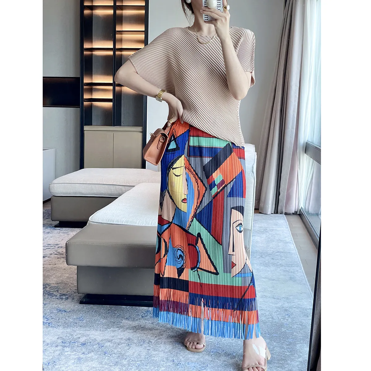 衣都精品- 2023新款復古印花流蘇氣質顯瘦褶皺半身裙