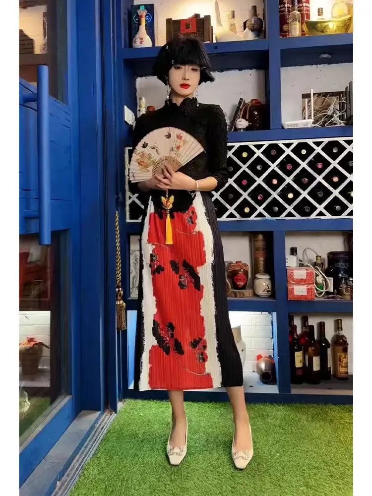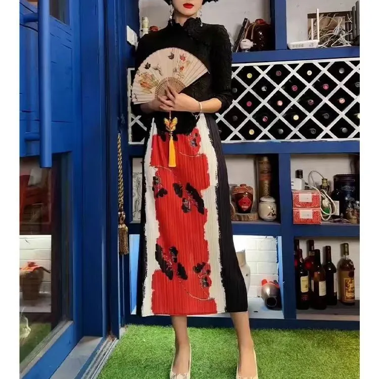 衣都精品- 2023新款百搭包臀高腰显瘦A字褶皺半身裙