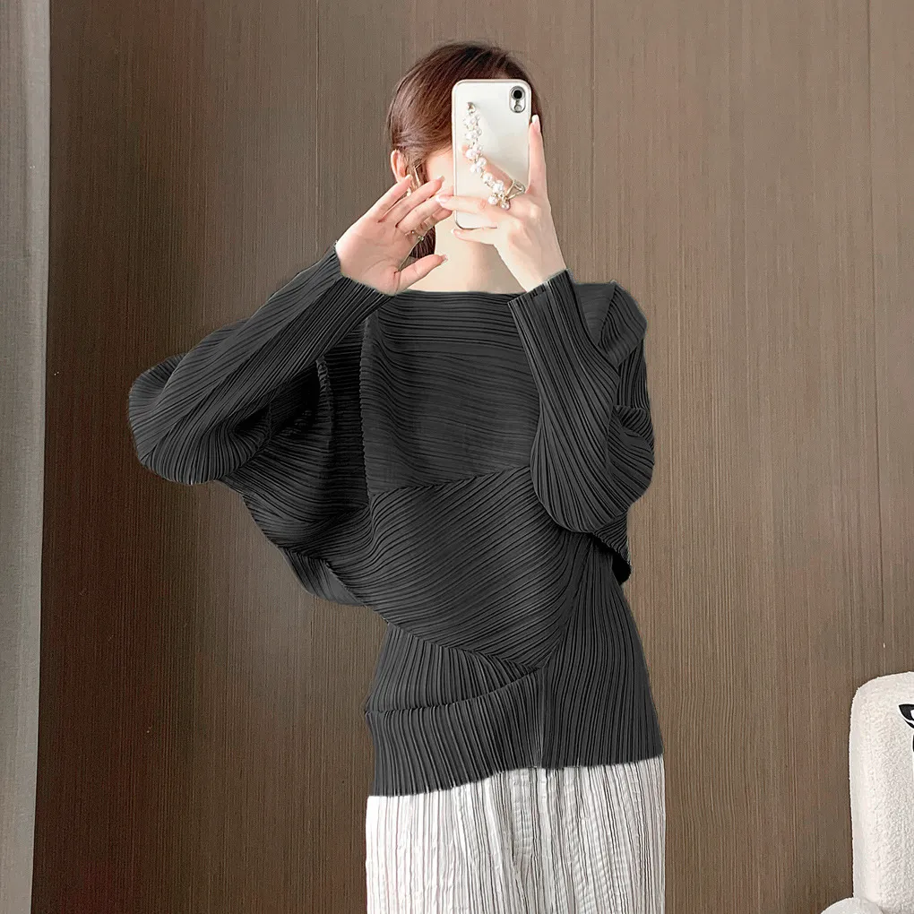 衣都精品- 2023新款不規則小眾設計長袖套頭褶皺上衣
