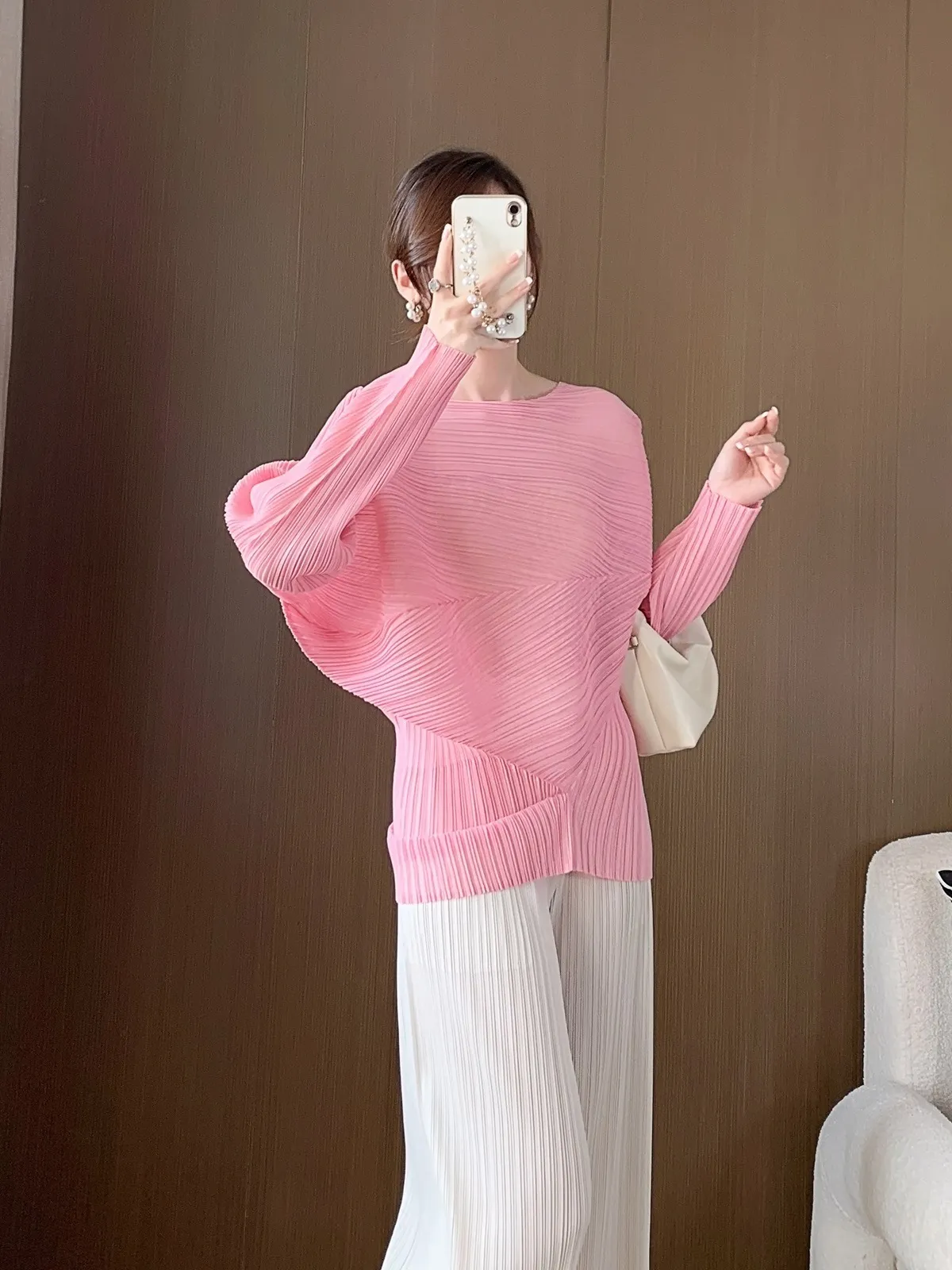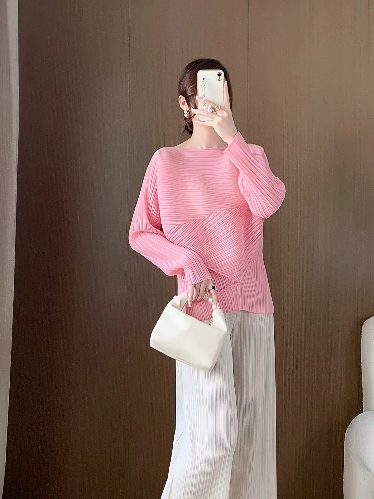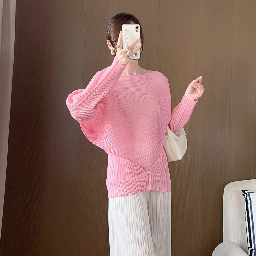 衣都精品- 2023新款不規則小眾設計長袖套頭褶皺上衣