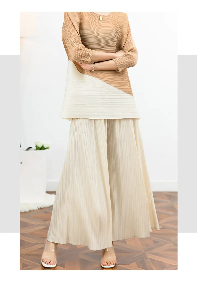 衣都精品- 2023新款時尚百搭垂墜感休閒褶皺喇叭褲