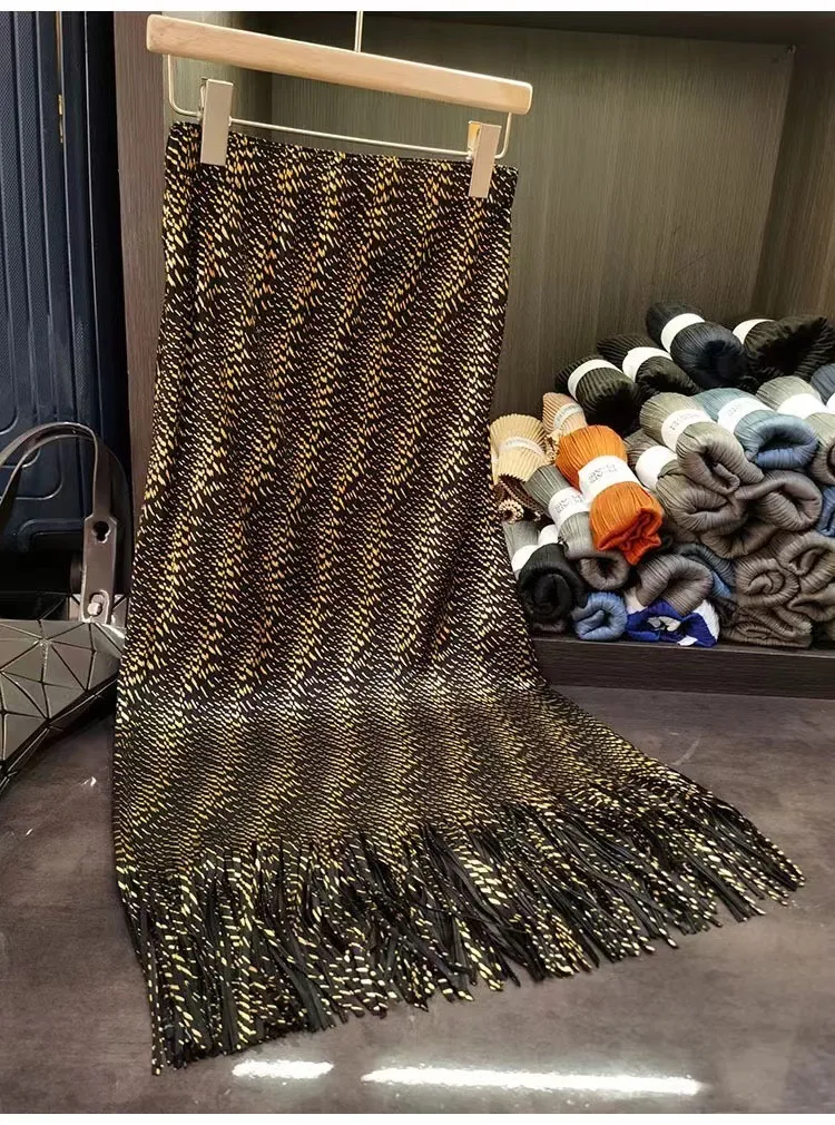 衣都精品- 2023新款高階銀光墨海流蘇褶皺半身裙
