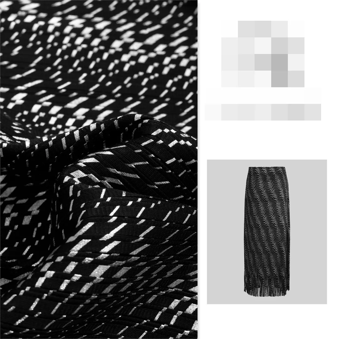 衣都精品- 2023新款高階銀光墨海流蘇褶皺半身裙