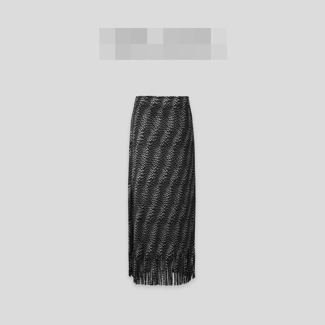 衣都精品- 2023新款高級印花顯瘦流蘇優雅褶皺半身裙