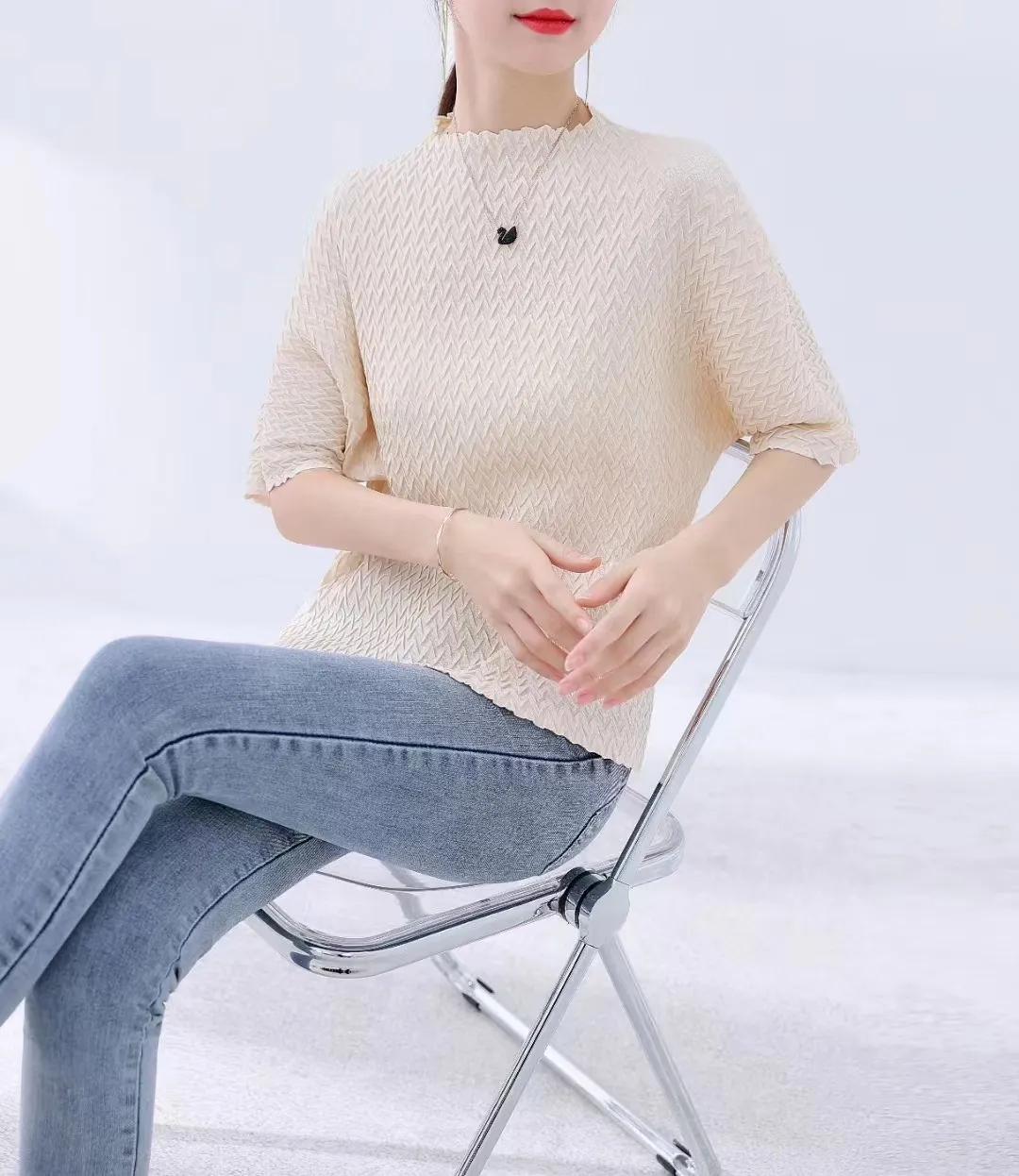 衣都精品- 2023新款氣質名媛百搭立體花紋褶皺上衣