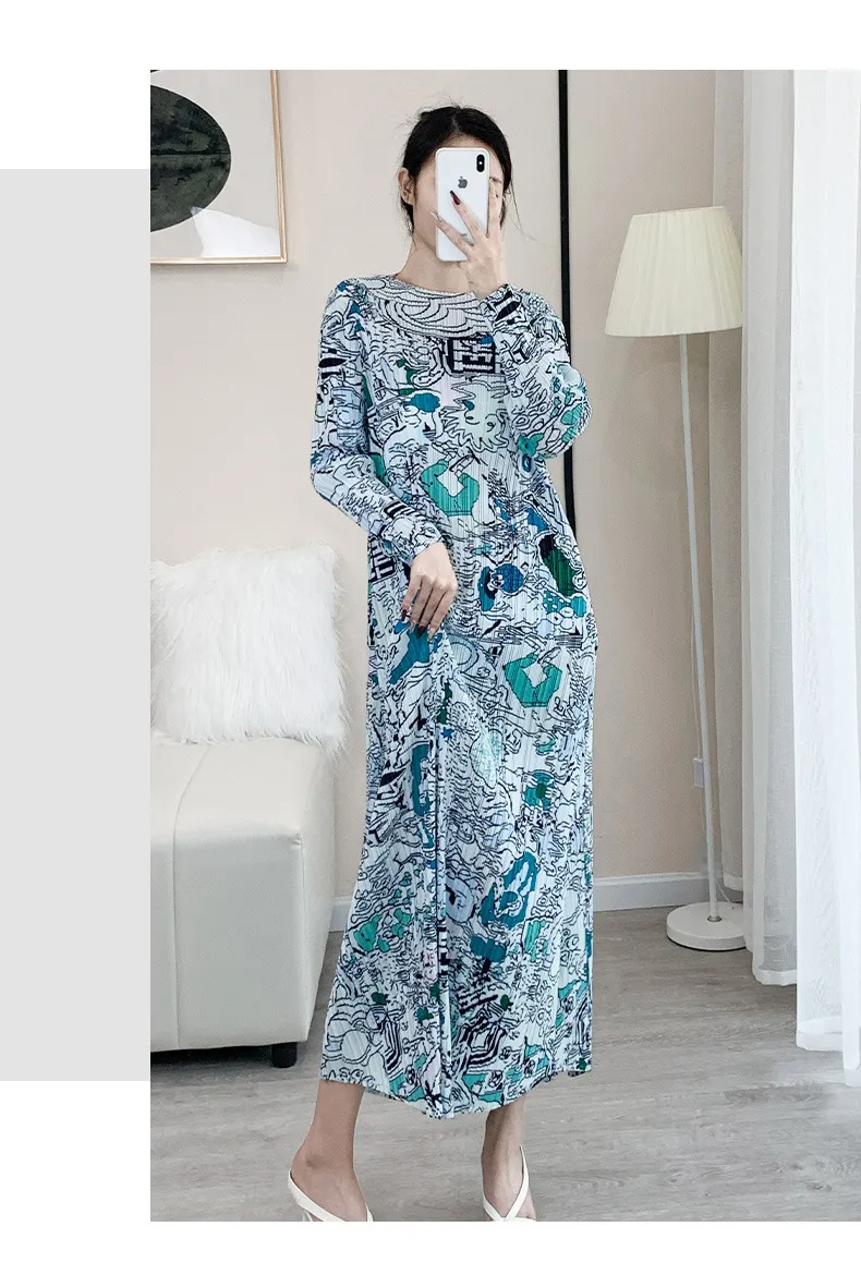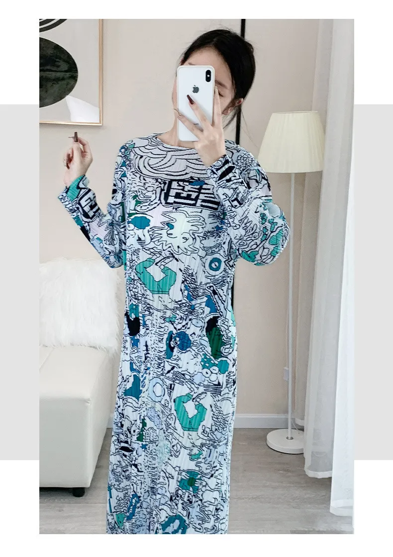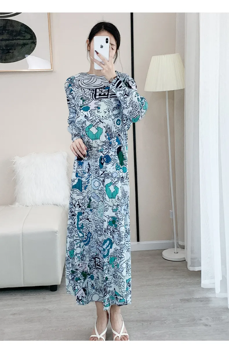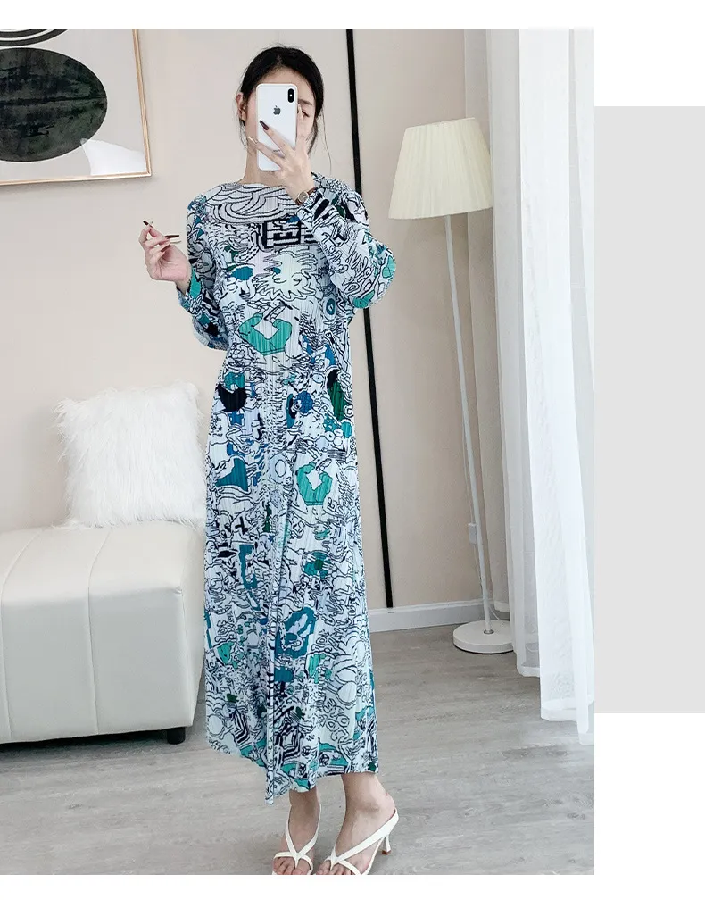 衣都精品- 2024新款時尚印花氣質顯瘦輕奢褶皺連衣裙