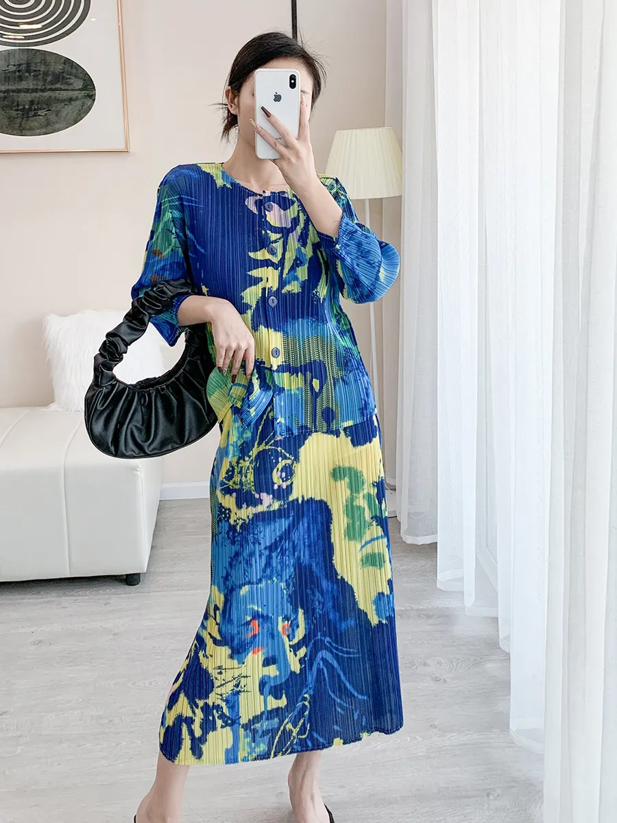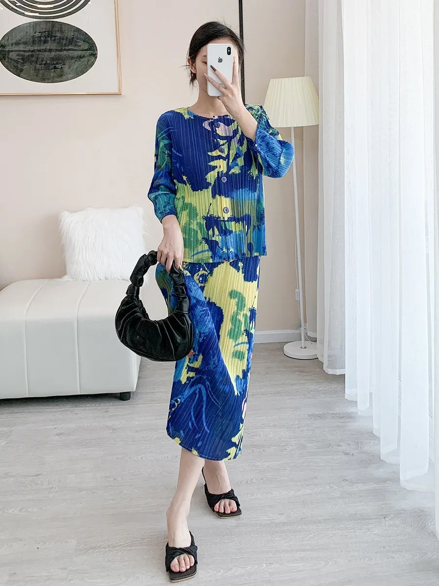 衣都精品- 2024新款時尚高檔洋氣修身印花褶皺套裝