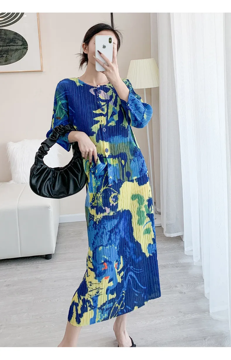 衣都精品- 2024新款時尚印花氣質顯瘦輕奢褶皺連衣裙