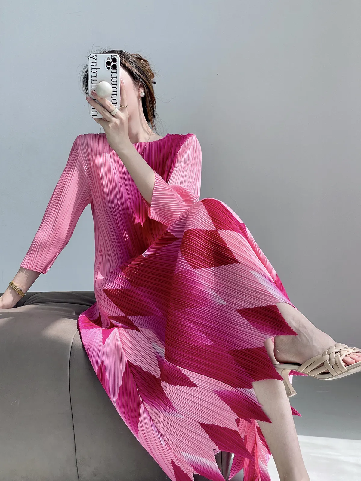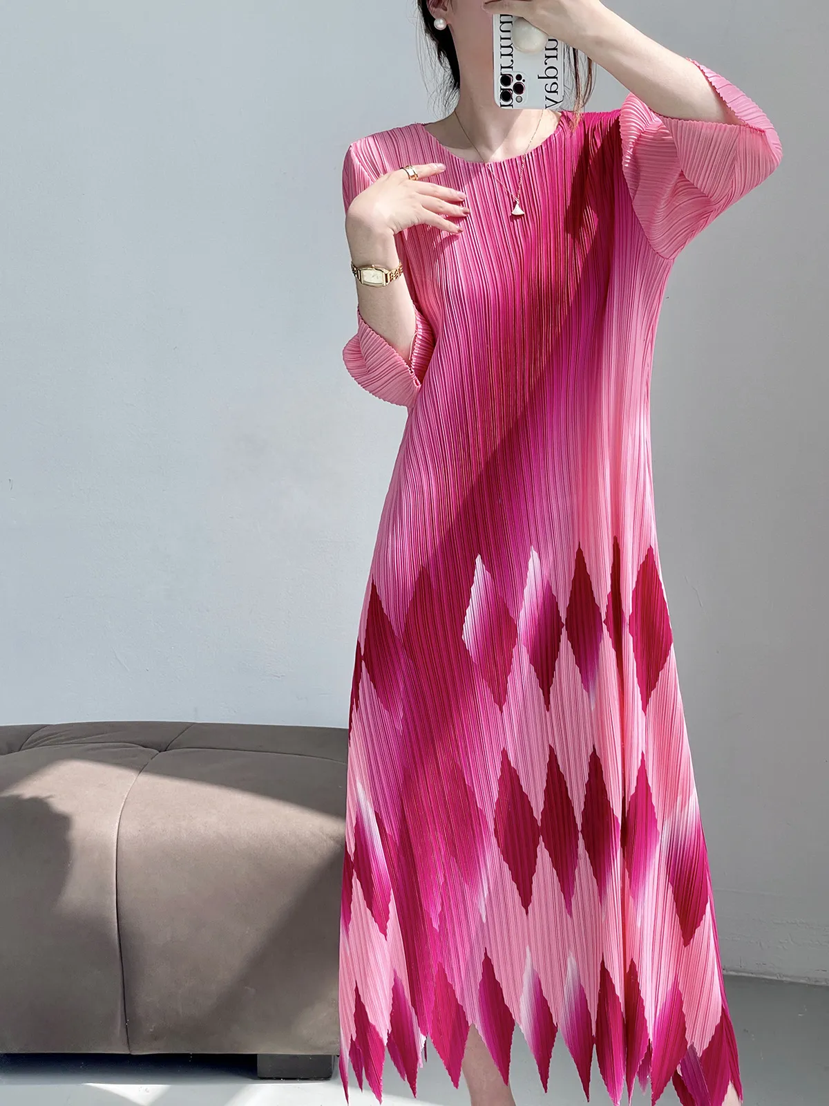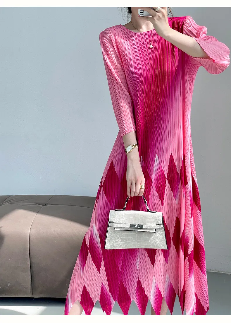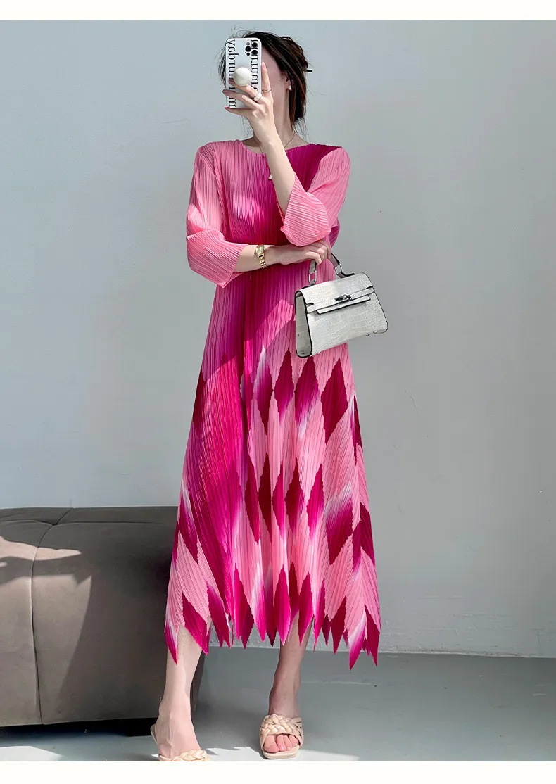 衣都精品- 2024新款時尚印花氣質顯瘦輕奢褶皺連衣裙
