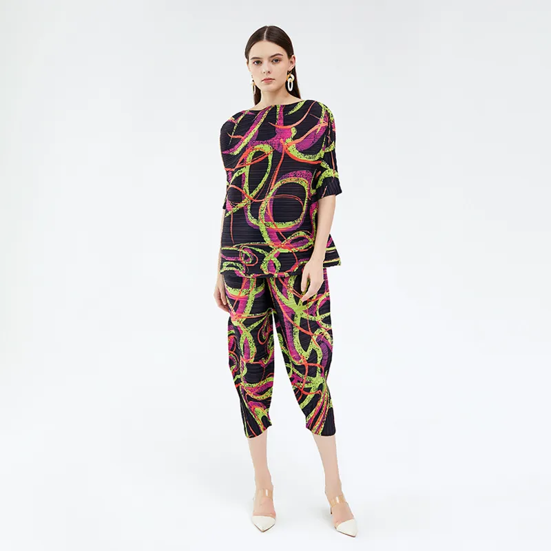 衣都精品- 2024新款高級拼色印花外貿修身褶皺連衣裙