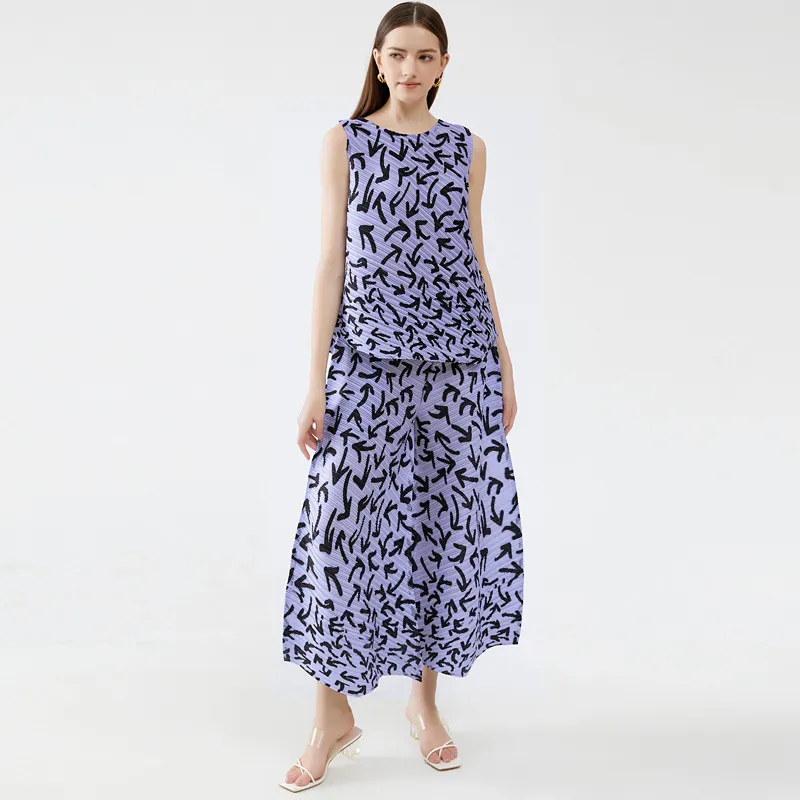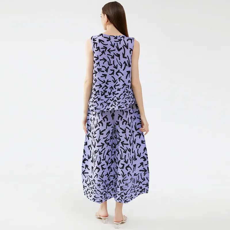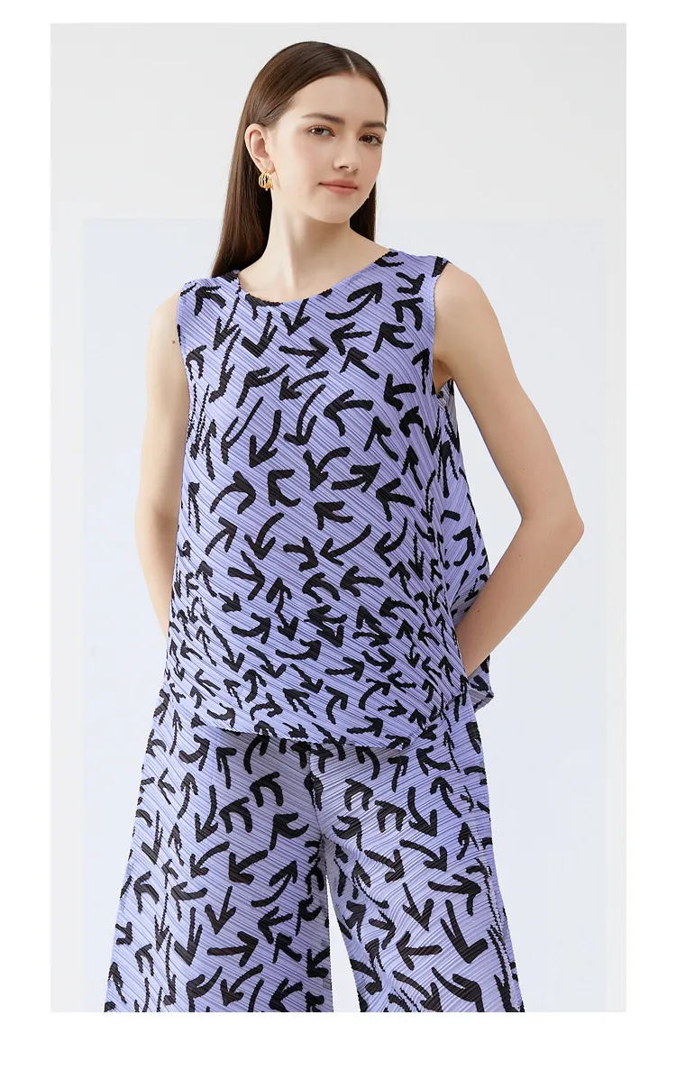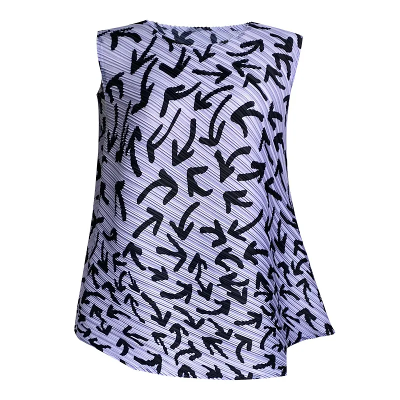 衣都精品- 2024新款時尚箭頭印染無袖薄款褶皺上衣
