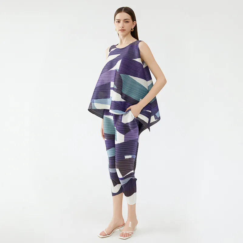 衣都精品- 2024新款時尚箭頭印染無袖薄款褶皺上衣