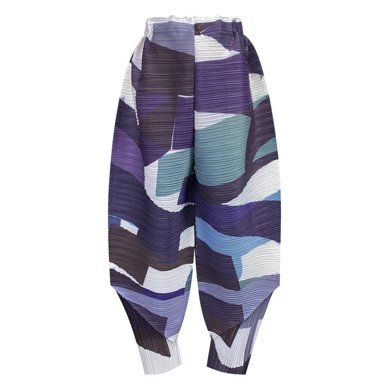 衣都精品- 2024新款時尚箭頭印染褶皺寬鬆闊腿褲