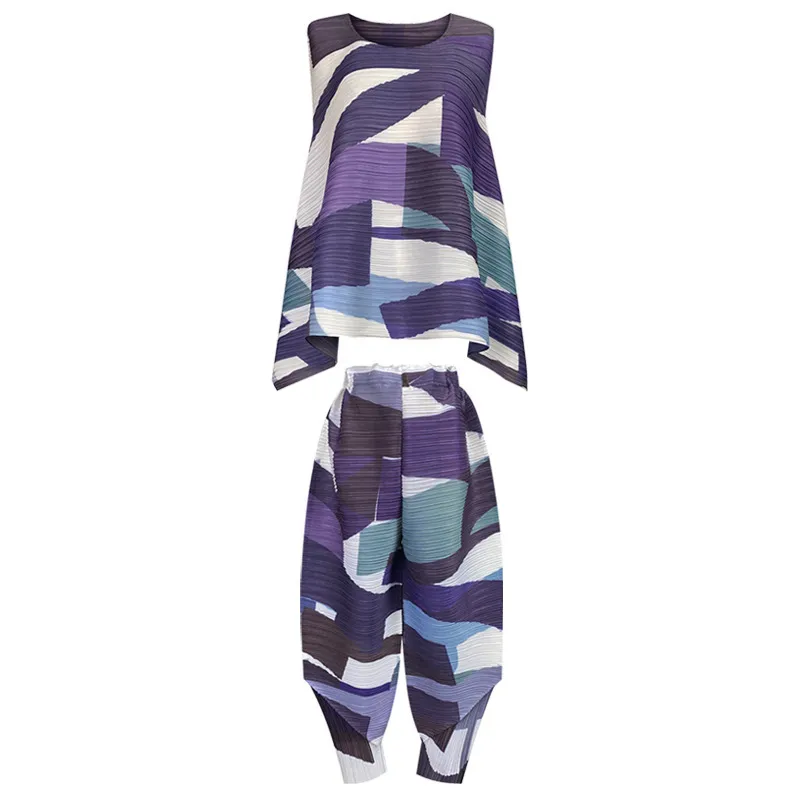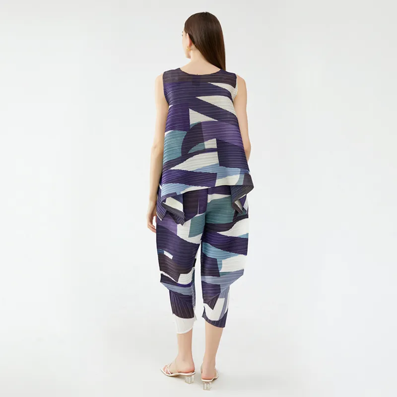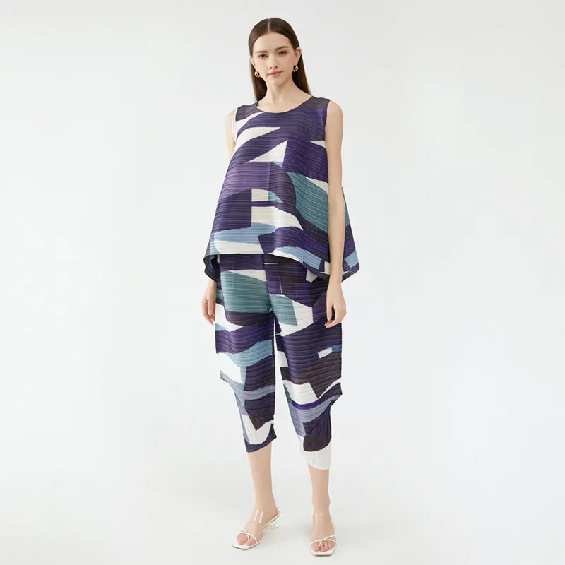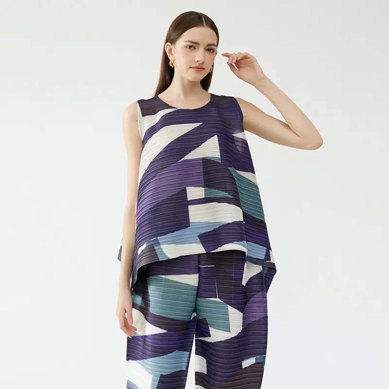 衣都精品- 2024新款時尚箭頭印染無袖薄款褶皺上衣