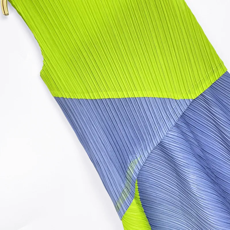 衣都精品- 2024新款圓領無袖撞色高腰拼接不規則褶皺連衣裙