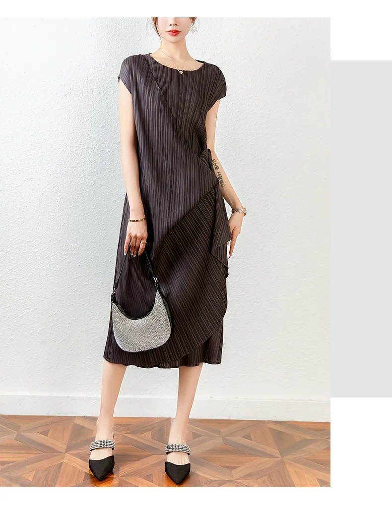 衣都精品- 新款設計感小眾時尚不規則顯瘦褶皺連衣裙