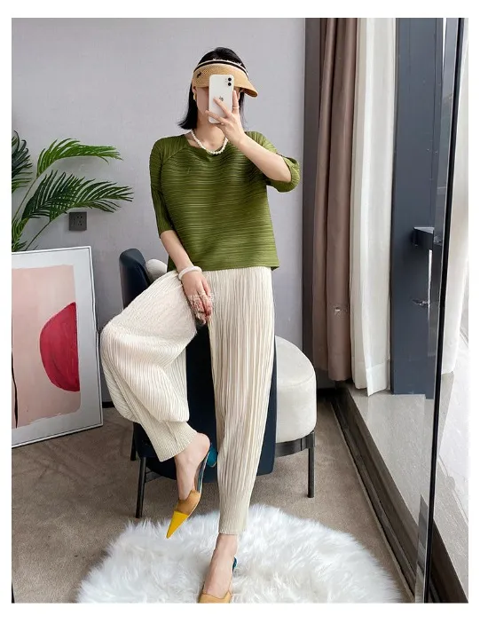 衣都精品- 2024春夏新款寬鬆顯瘦修身垂感褶皺闊腿褲