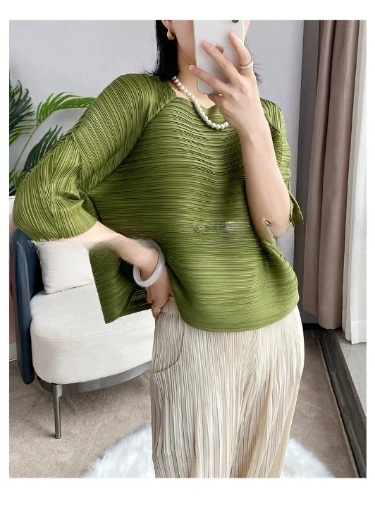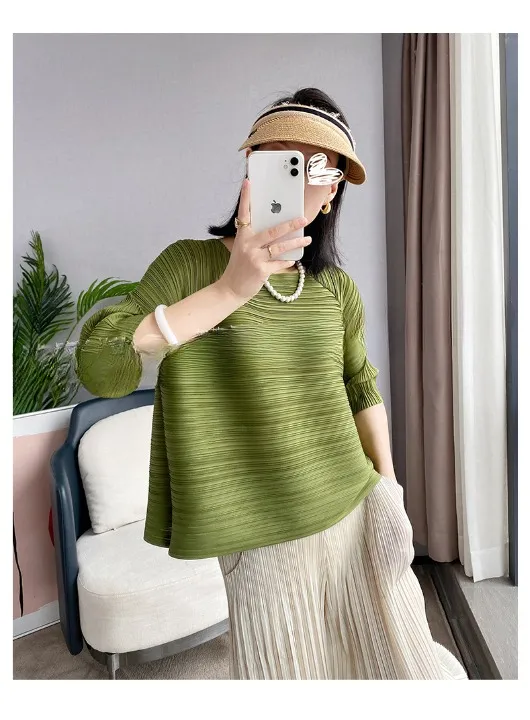 衣都精品- 新款短袖夏季寬鬆遮肚洋氣顯瘦褶皺上衣