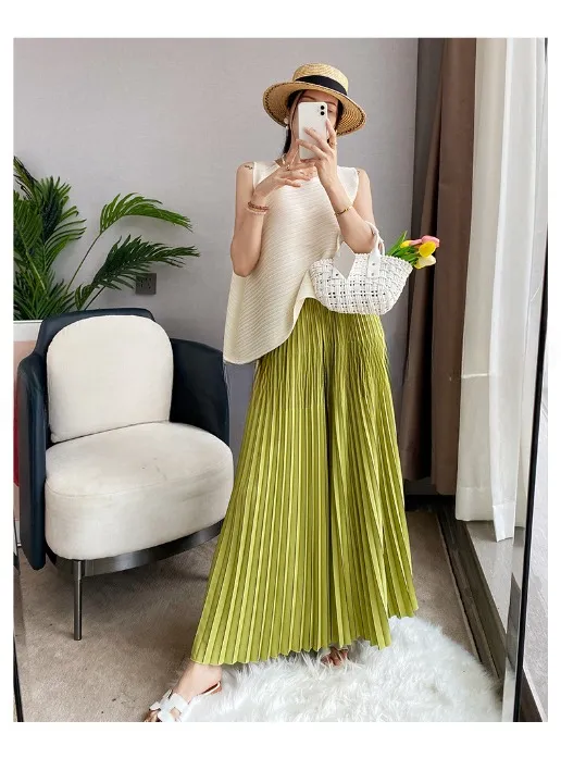 衣都精品- 2024春夏新款寬鬆顯瘦修身垂感褶皺闊腿褲