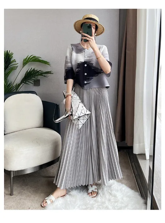 衣都精品- 新款塗鴉印花大擺中長款薄款褶皺背心裙