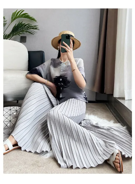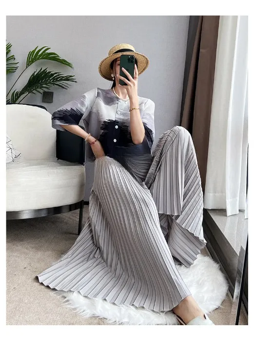 衣都精品- 2024春夏新款寬鬆顯瘦修身垂感褶皺闊腿褲
