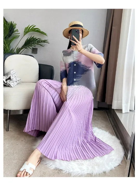 衣都精品- 2024春夏新款寬鬆顯瘦修身垂感褶皺闊腿褲