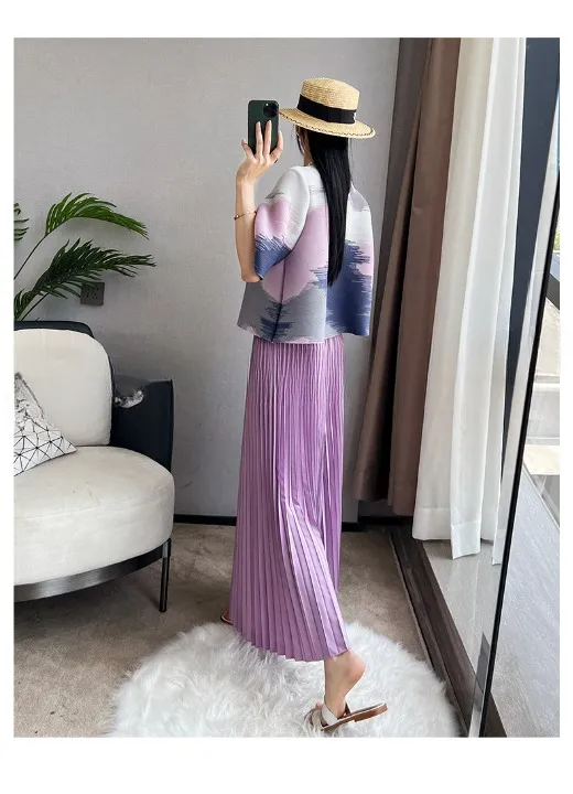 衣都精品- 新款塗鴉印花大擺中長款薄款褶皺背心裙