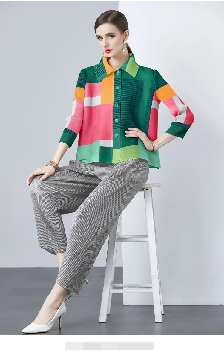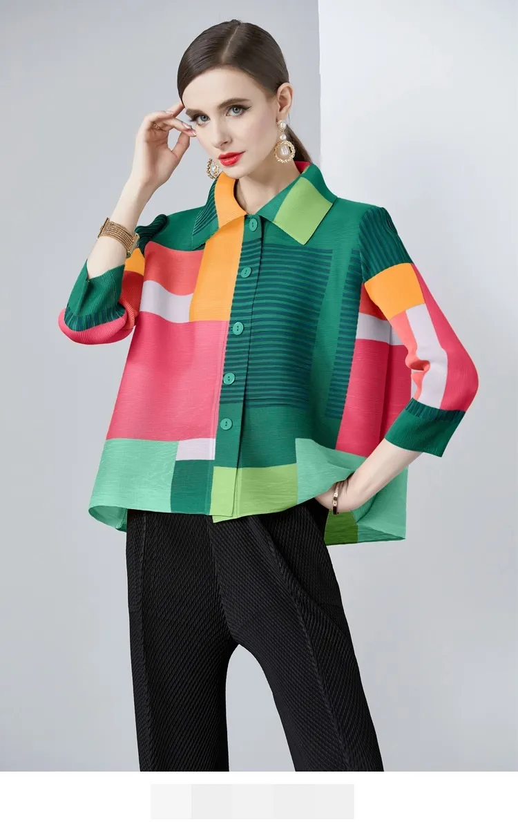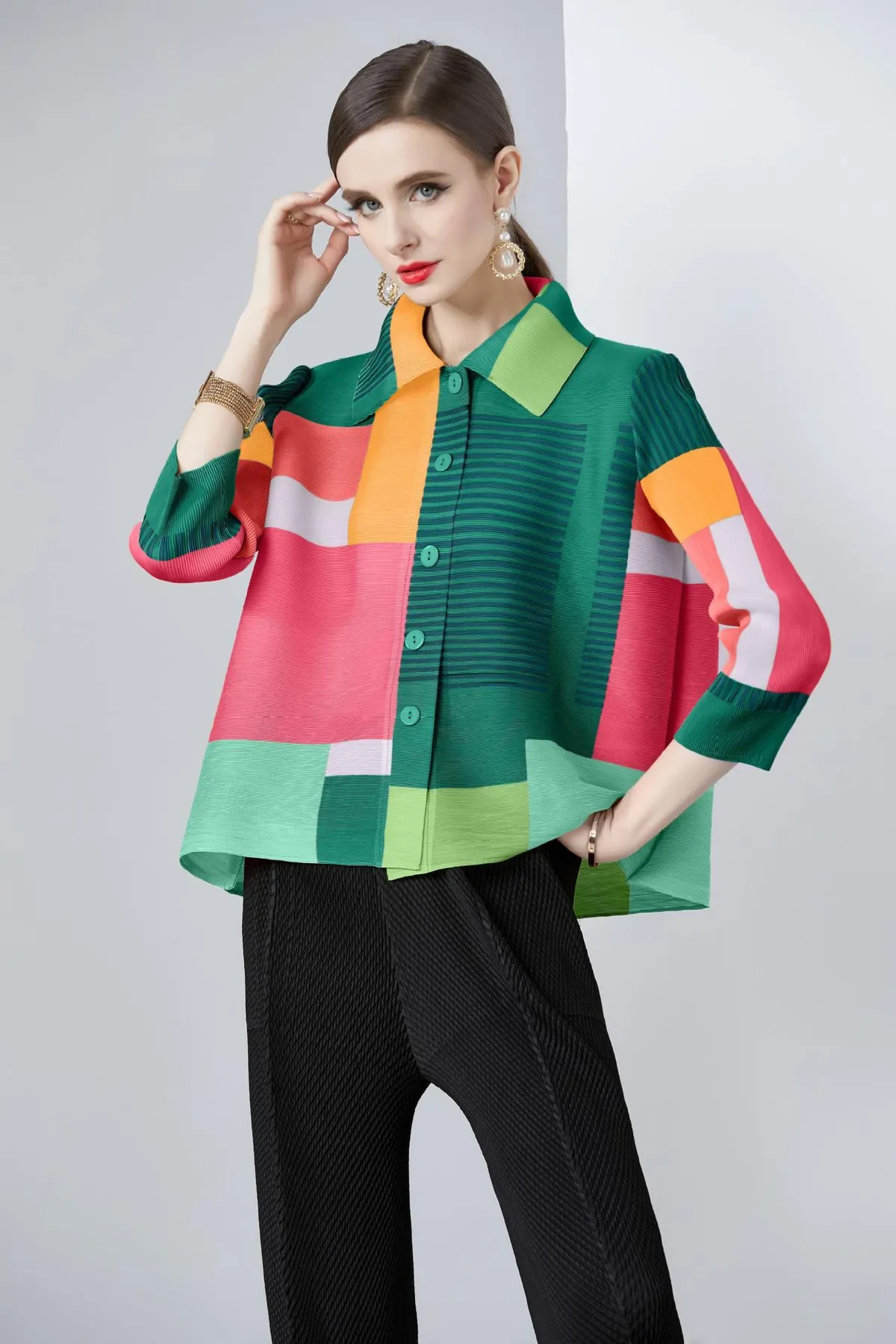 衣都精品- 新款拼色印花氣質時尚休閒皺褶外套