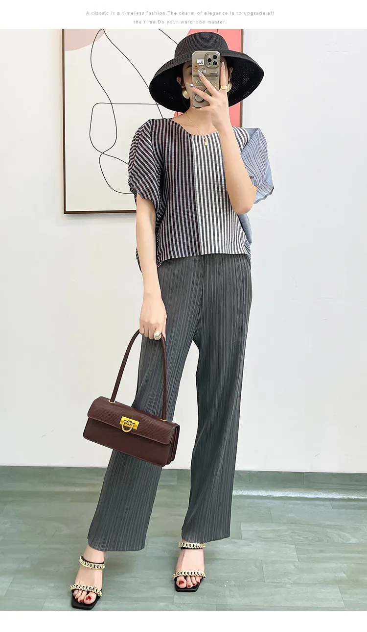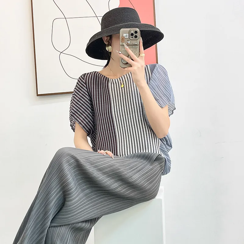 衣都精品- 新款高彈性顯瘦垂感印花短袖大碼褶皺上衣